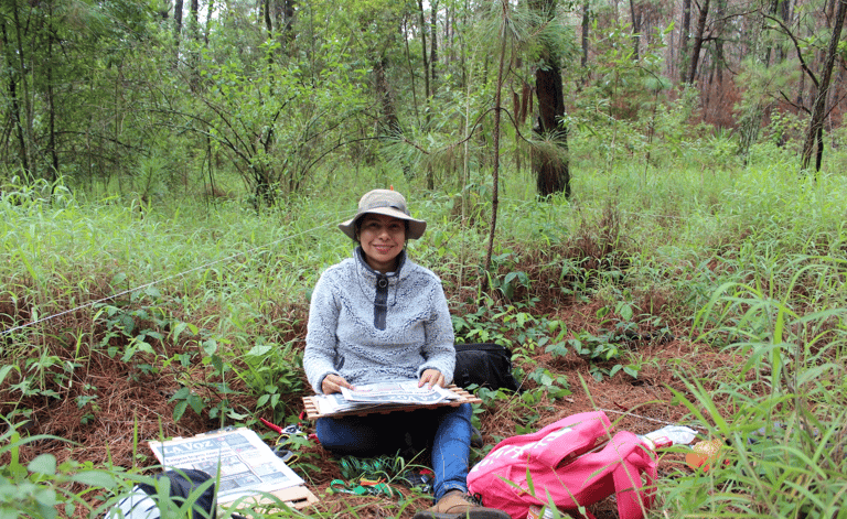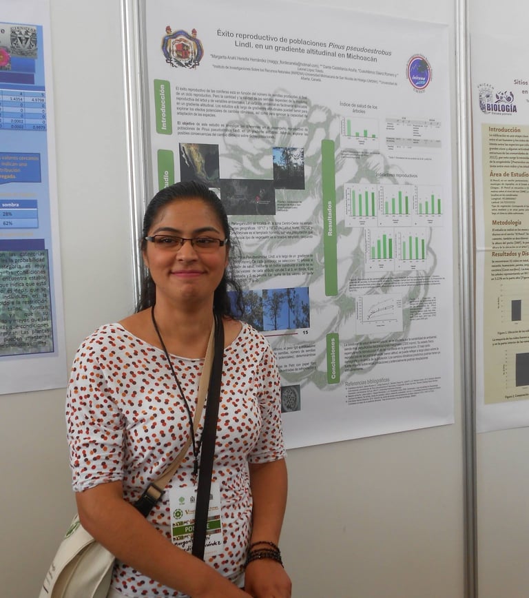Además de ser una super-mamá, Rocío es bióloga por la UMSNH, ella está interesada en la respuesta de las especies a los efectos del cambio climático. Específicamente en su proyecto de tesis utilizando un diseño de transplantes recíprocos, evalúa la respuesta en germinación de distintas procedencias altitudinales de Pinus pseudostrobus en altitudes que van desde los 2300 hasta los 3000 msnm en la Comunidad Indígena de Nuevo San Juan Indígena, Michoacán.